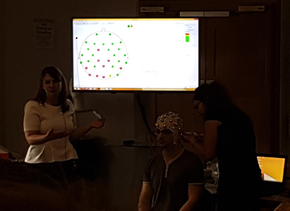Furthermore, as well as acquiring both theoretical and practical knowledge from the scheduled lectures and workshops, I also gained a lot from talking to the other ERP researchers who were attending the Boot Camp. A large proportion of attendees focused on language as their main research area, while others focused on clinical psychology or other areas of psychology such as memory or perception. I found it really interesting to hear the differences of opinion between those who were primarily linguists and those who were primarily psychologists. For instance, when discussing the word-by-word presentation of sentences in ERP experiments, the psychologists stated that each word should immediately replace the previous word, whereas the linguists concluded that it is best to present a blank white screen between each word. Conversations such as this made it very apparent that many of the aspects of ERP research are not standardised, and so it is up to the researcher to decide what is best for their experiment based on what is known about ERPs and what is conventional in their particular area of research.