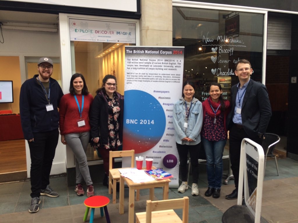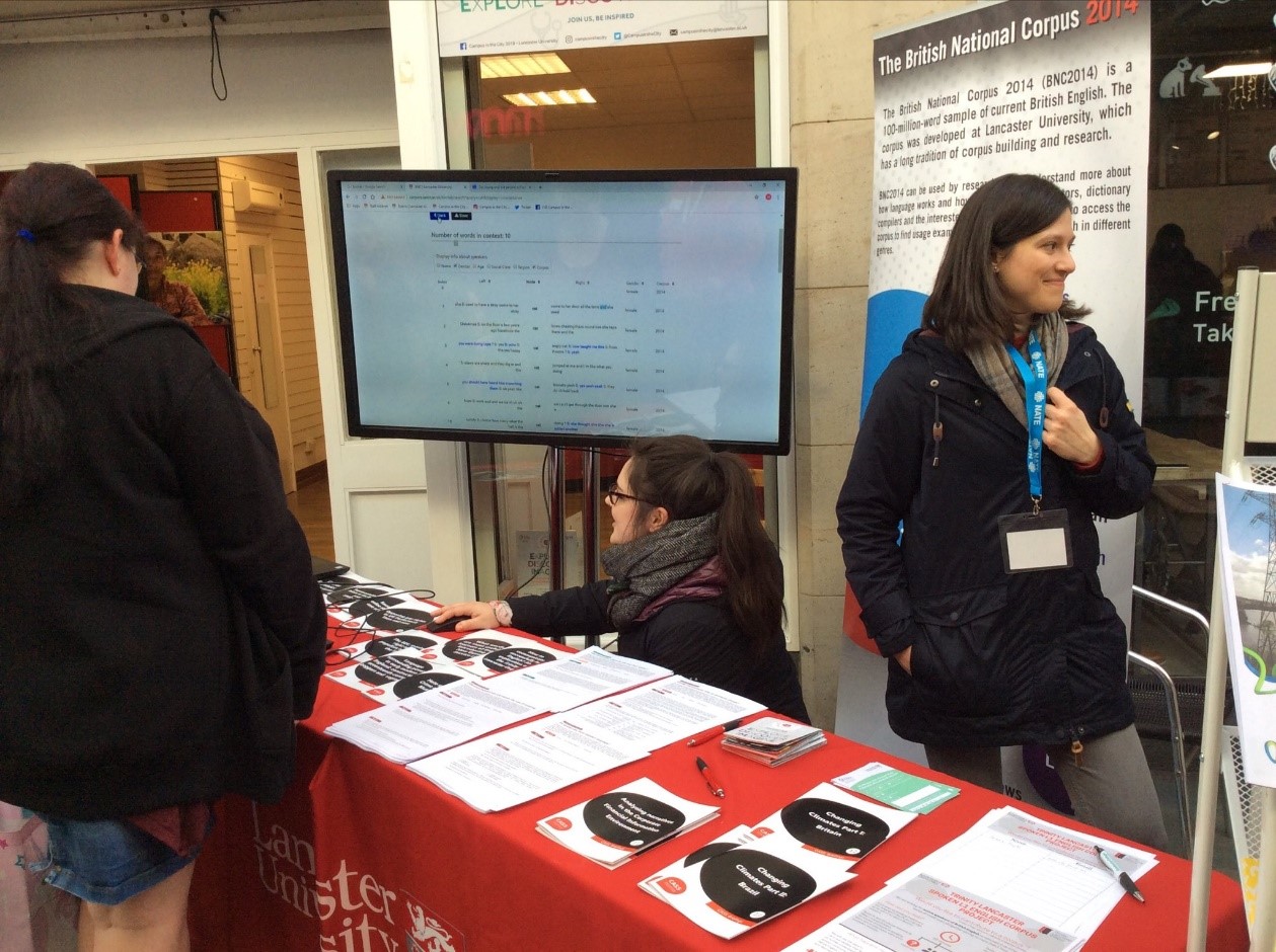 Last Saturday (9th March) a group of students led by Vaclav Brezina and Dana Gablasova took part in the Campus in the City event, organised by Lancaster University. The main aim of this event is show research highlights to a general audience. So, we decided to bring corpus linguistics to town and show anyone who would be interested that searching corpora can be fun. And of course that it can also tell us something very interesting about language and society – something we all can relate to to some degree.