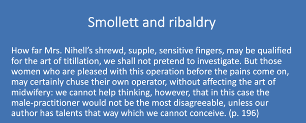 The final panel of the day featured Elisabetta Lonatiโ€™s talk on 18th-century midwifery, with our favourite quote of the day: โ€œThat which principally enobles any science, is the dignity of its object, and the public utility arising from itโ€. We then took a fascinating detour via a presentation by Anupama Shukla on different portrayals of people with epilepsy in literature (plenty of good Dostojewski content here!) before returning to the topic of midwifery in Richard J. Whittโ€™s talk dramatic tour of some quite explicit language emerging from a textual exchange within the 18th century controversy surrounding man-midwifery and the use of instruments.