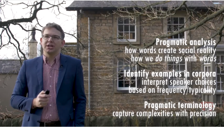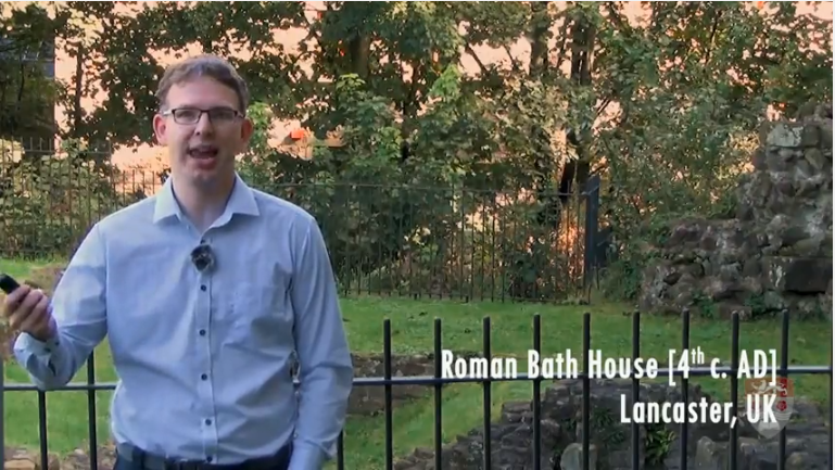 To achieve this aim, we decided to use different memorable locations around Lancaster to record lectures, in which we highlight different aspects of corpus linguistics and its applications. For example, we travelled to Morecambe, a seaside town near Lancaster, to record a lecture entitled ‘A drop in the ocean’, which uses the metaphor of the sea and all the water in it to explain how we can use corpora to sample the vast amounts of language that is produced every day. In another lecture, the Lancaster house of John Austin was chosen as the perfect backdrop for a lecture on corpora and pragmatics. The ruins of the Roman Bath House from the 4th century AD, located in the vicinity of the Lancaster Castle, created the opportunity to explain key grammatical categories, which date back to the ancient times and which are, with some modification, still used today.